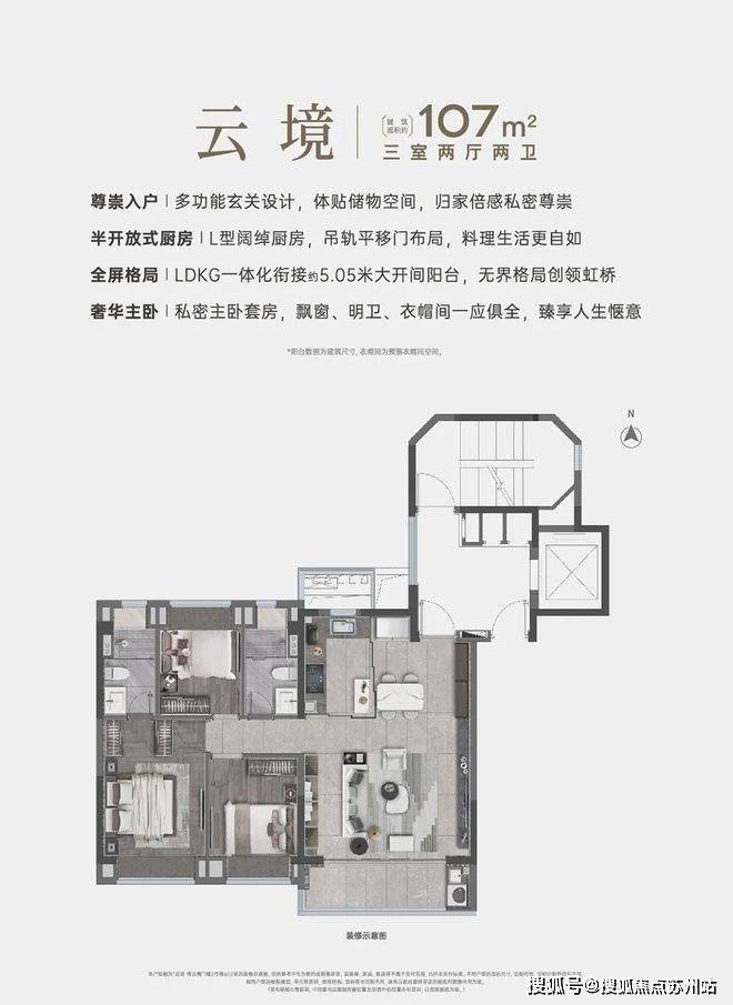建面约107㎡3房2厅2卫▼