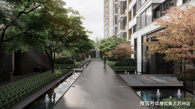 浔溪入园,林掩巷道,伴水归家,探泉归境。一条60米踏水归家步道,一侧“琉璃水院”4米瀑布景墙,让归家心境在隐奢酒店般的度假情境中自在转换。