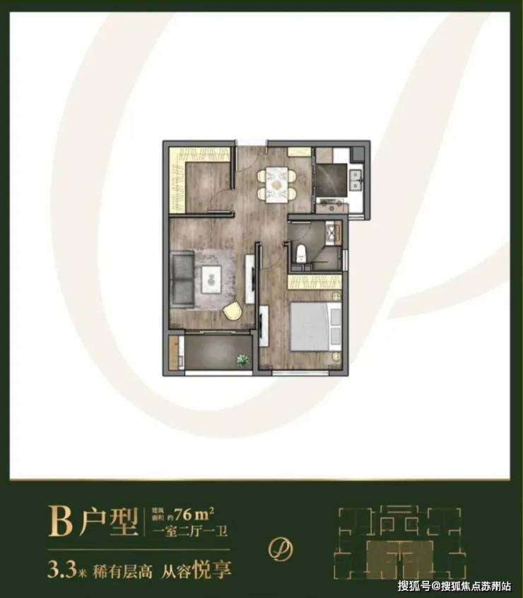 其中,建面约76m²1+1户型20套,总价494万起