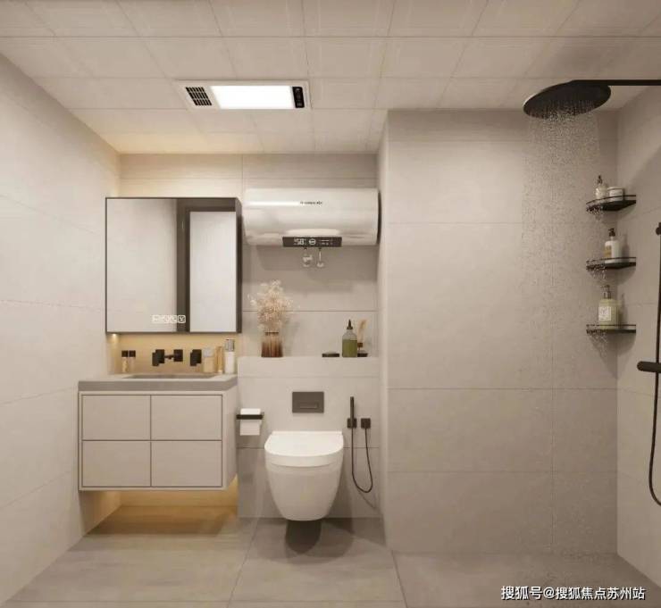 卫生间的设计当中选择白色和灰色进行相互搭配,再加上悬空收纳柜和壁挂马桶又让整个空间变得更加通透明确。整个家里的设计师比较偏向于中性的,在保证空间的实用性和颜值的基础上,还透露着自然清新,耐看高级。