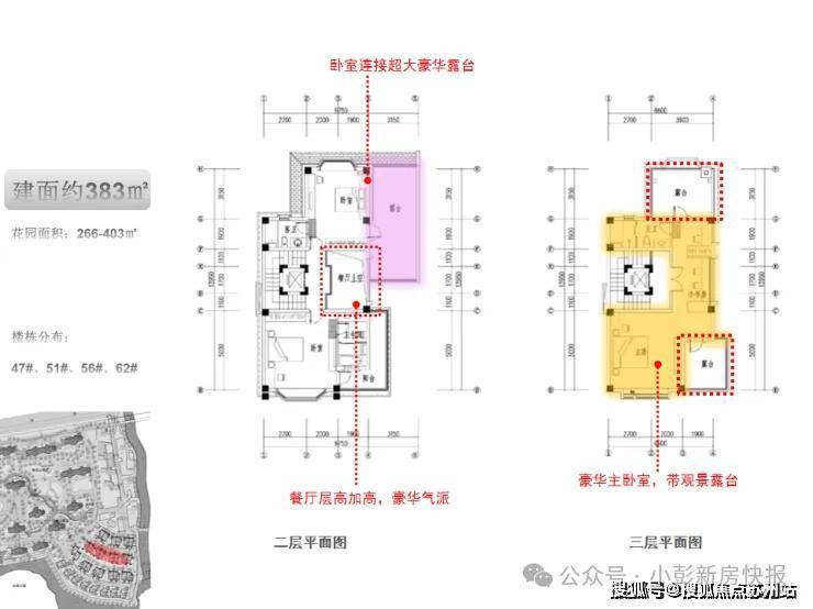 建面约383㎡双拼别墅,花园面积266-403㎡