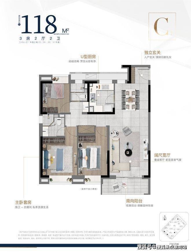 约128㎡四叶草四房 :独立玄关柜、中西双厨、约6.8米双联阳台,满足三代同堂需求;