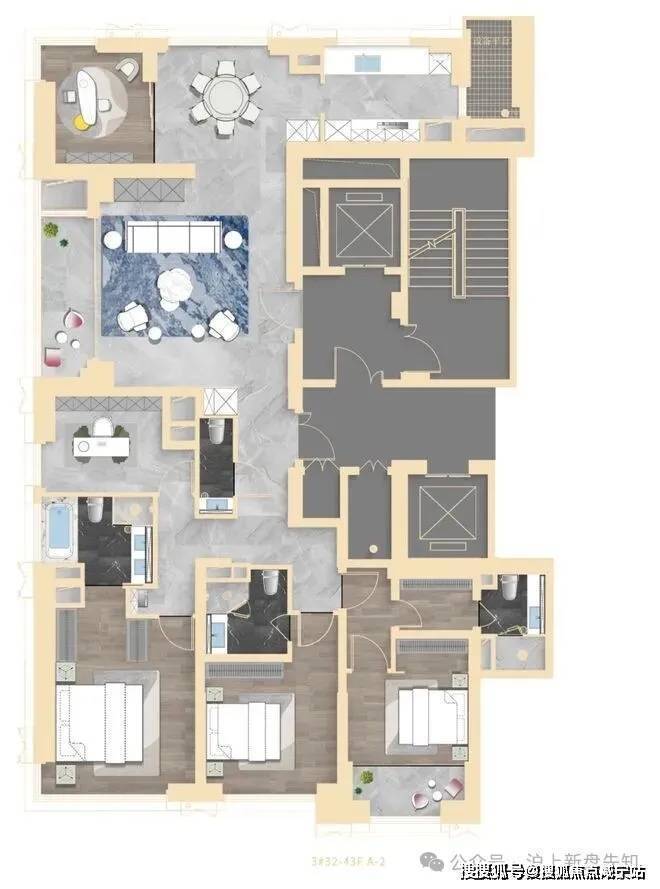 尤其主卧星级套房,配置独立衣帽间、书房,奢华主卫四分离,双台盆+淋浴区+大浴缸+智能马桶,私密性&奢适度无敌;