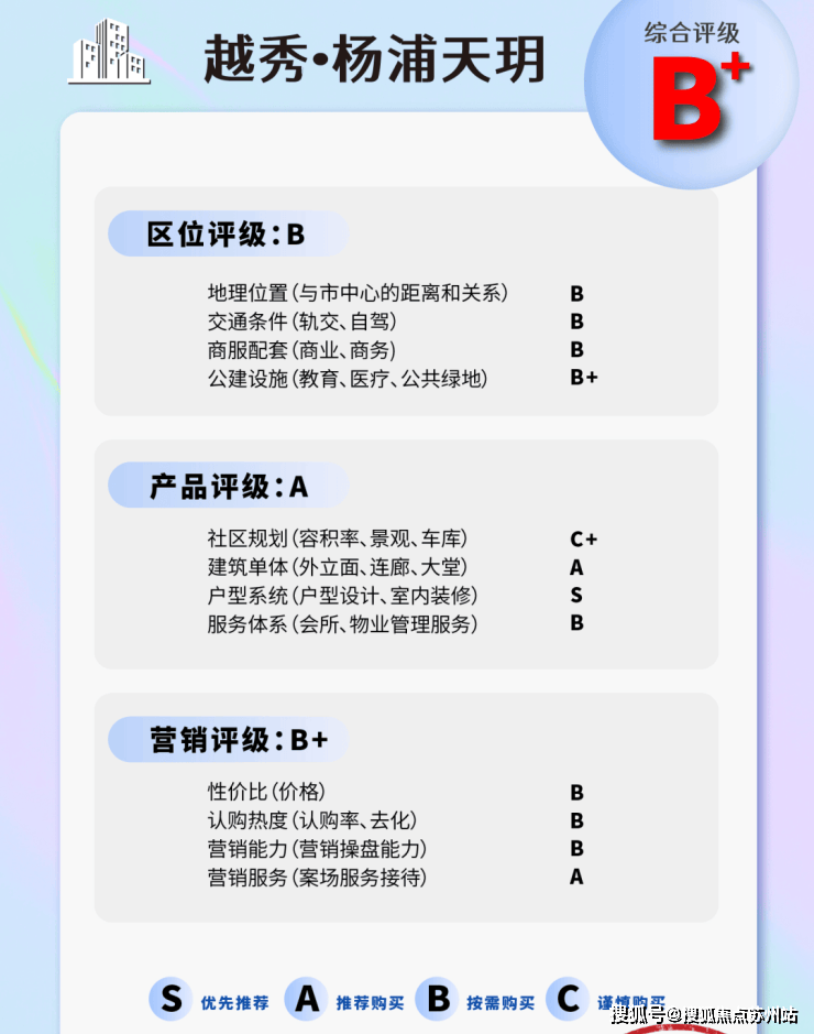 在1000万总价段里,项目的公区显得不够看,没有会所、也没有架空层泛会所,缺乏外部会客空间,后续可能只能通过3500平的社区商业和中央景观轴来实现“外摆”功能。交易评级:B+5层洋房的产品在整个市区都很少见,相应的供需关系就会相对紧俏,一共只有28套,所以预计洋房热度会很高。整体户型设计得房率高,更受传统“套内”爱好者青睐。