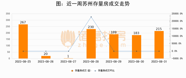从存量房来看,2023年08月31日苏州存量房单日成交215套,比昨日增加32套,环比上涨17.5%。从近一周存量房成交来看,苏州存量房日均成交套数为157套,08月31日单日成交215套,高于近一周平均水平36.9%。