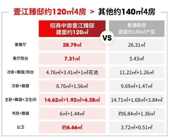 户型实际可利用面积率接近90%+(含飘窗、阳台等),壹江臻邸约120㎡的产品,比前期约140㎡的产品尺度感都更强;