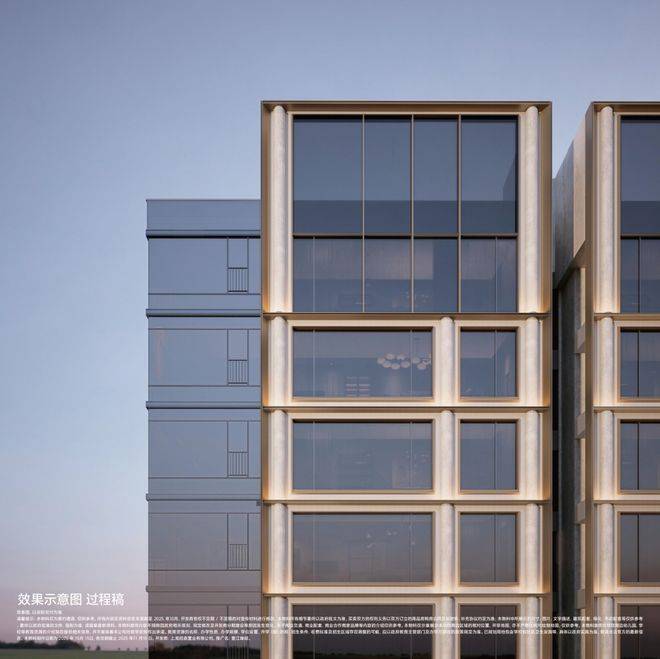 大张江领创柱式审美手法&弧形铝板与石材立面;