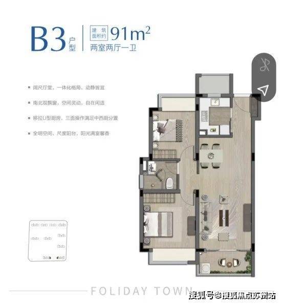 88㎡A1/91㎡B3户型-两室两厅一卫