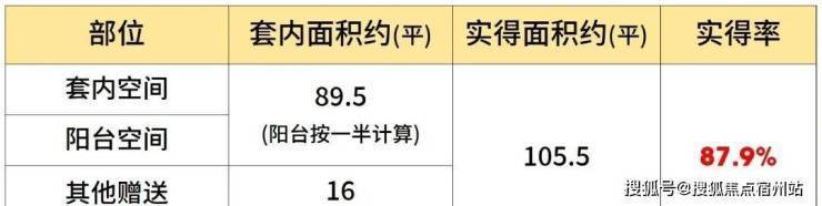 该户型大量的飘窗+双阳台设计,保证了每个功能间的通风采光,也提升了户型的实得率。经过专业建筑师测算,假设阳台全部封闭的情况下,项目建面约120㎡户型实得面积约105.5㎡,实得率约88%。(该实得率数据根据实得面积预估计算所得,仅供参考,不作为置业依据。最终得房率以购房合同为准)