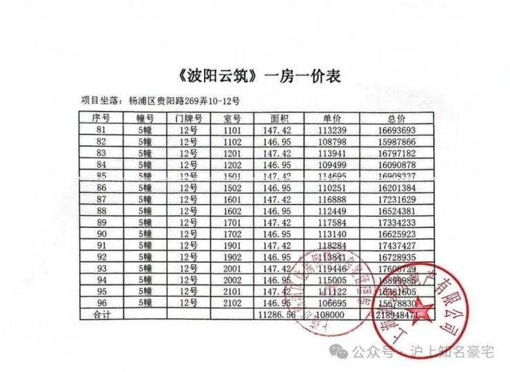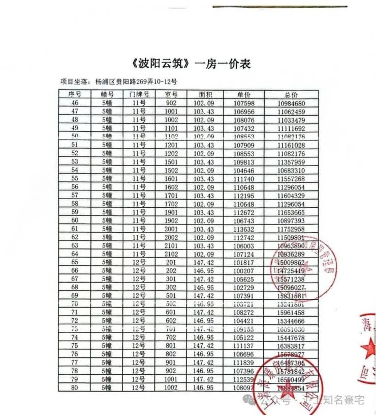 一房一价如下: