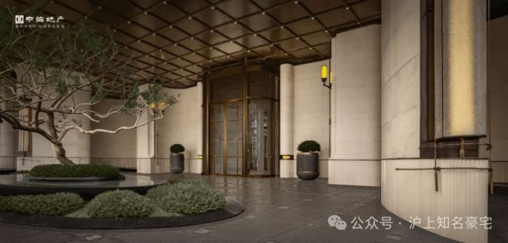 近距离看,项目的入口细节之处又不失奢华,尤其是大量名贵石材(安哥拉黑石材)的运用绝对是大手笔,椭圆形水池搭配波光粼粼的水景,这里还种植了一株约7米高的铁冬青,宛如翡翠屏风,豪门大院的气质扑面而来!