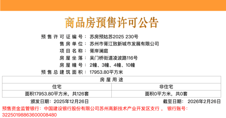 2025年年末,姑苏区胥江板块迎来本年度第一个纯新盘——胥江澜岸。