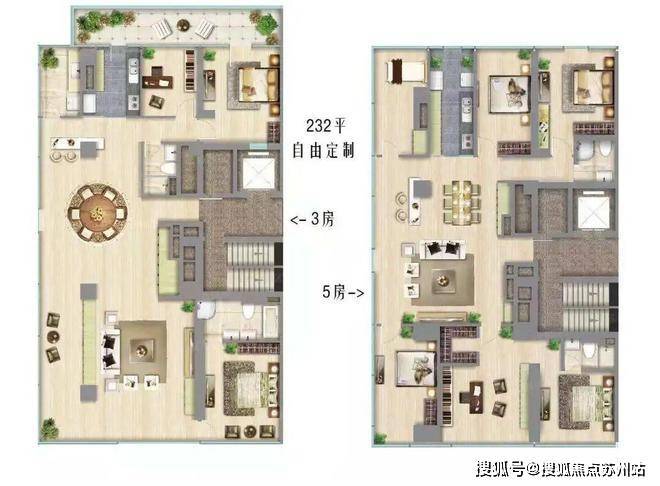 •面积:200.96㎡-.㎡(交付三房两厅三卫)