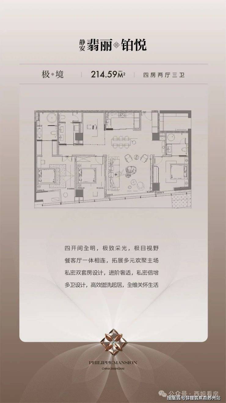 四开间全明,极致采光,极目视野餐客厅一体相连,拓展多元欢聚主场私密双套房设计,进阶奢适,私密倍增多卫设计,高效盥洗起居,全维关怀生活