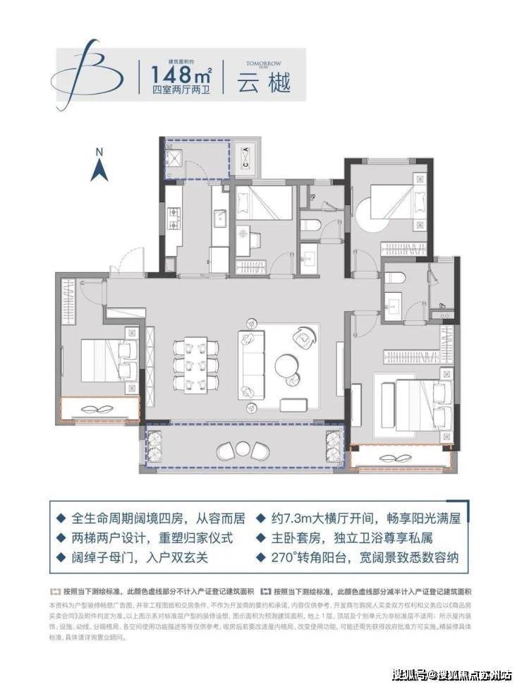 以约2.0的容积率打造全面改善的低密住区,住区内共规划9栋住宅楼,主打15-18层产品,约129/148㎡奢阔户型,匠心精工臻筑,为高端改善客群打造美好生活方式。