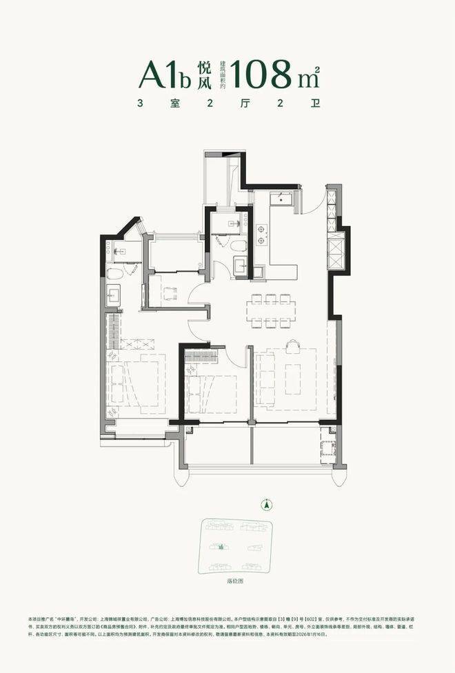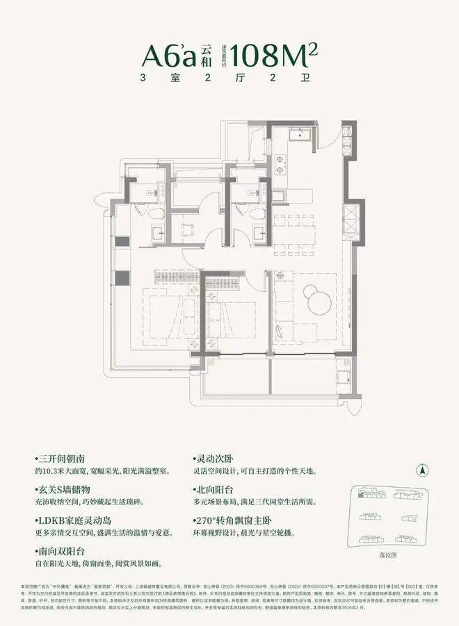 建面约108㎡3房的三阳台面积就高达约13㎡.(阳台仅附赠一半面积)