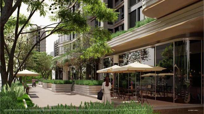 值得一提的是,中环麓岛还通过道路退界、柔性边界等手法消融内外界限,创造性打造约1.5公里生息街道,将生活街区升级为串联商业、公园与居住的立体街区.