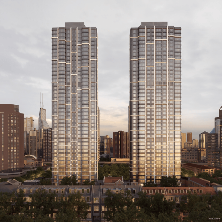 约150米高的双子地标塔楼,北侧面向宁静的公园,东、南侧则是低矮的历史风貌街区,视野开阔无遮拦,高区可尽享陆家嘴与黄浦江的繁华景致。