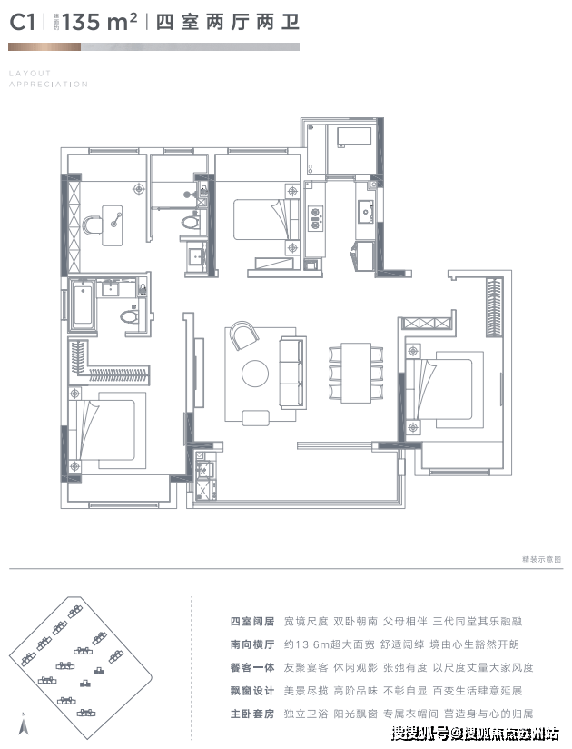 户型:建面约105㎡、125㎡、135㎡、165㎡