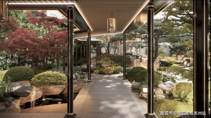 项目巧妙结合了当地文化特色,采用中国传统营造技艺,打造中轴对称的格局,让人感受到浓浓的东方韵味。中亿丰更是大手笔打造了气韵十足的宋式园林,走在里面,仿佛穿越回了千年前的苏州。