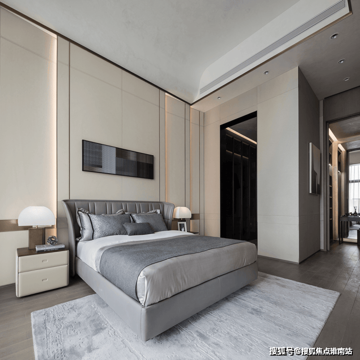 墙体以结构立面斜角造型向中间递进,增强了主卧的视觉。