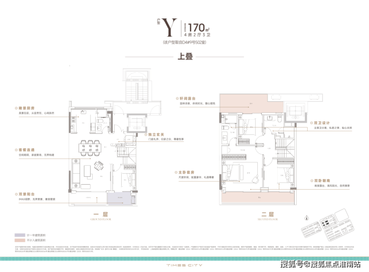 170m²上叠,南向双阳台+南北双露台: