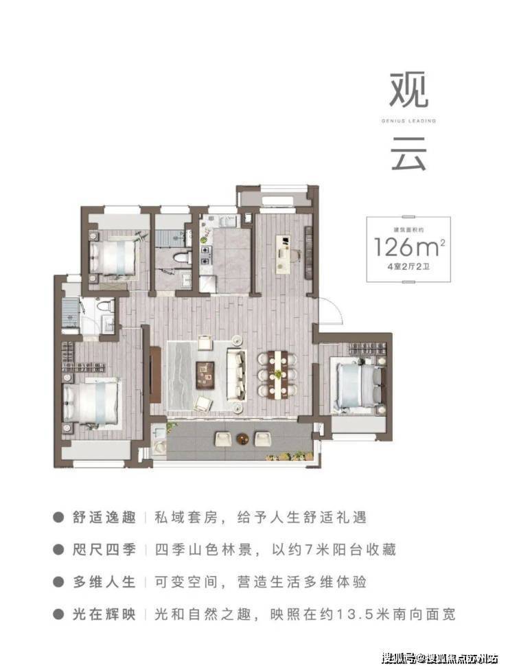 在现今人口压力日益增大的同时,随着压力的增大,人情冷暖变得稍许淡薄。六七十年代,家家户户四五个孩子,其乐融融,共享天伦,亲情亦是可以破开一切寒冰的利刃。山云庭拥有多种大居室户型,群山森海之处揽境观云,建筑面积约【126㎡观云】户型,四室两厅两卫格局,满足家庭人口多的所求所需。
