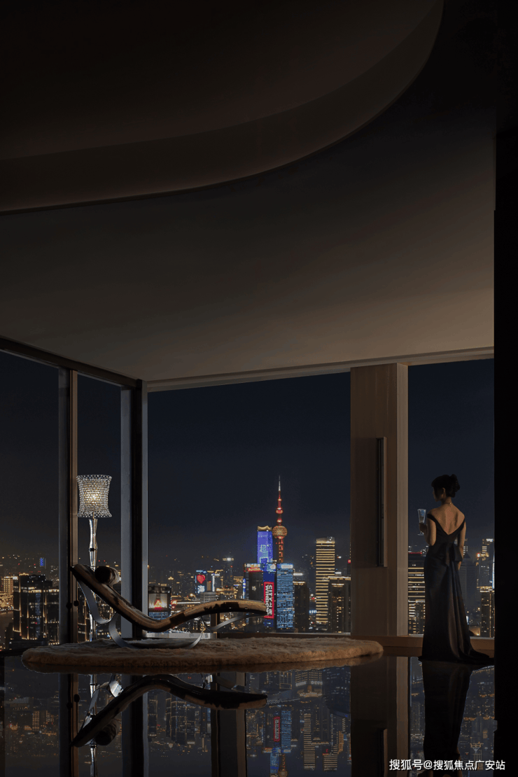 眼前是碧波荡漾,静静地透过落地窗户!那是百年外滩和滚滚黄浦江,天际线与地平线壮丽景色尽收眼底!这也是外滩,如此高度唯一无边泳池!
