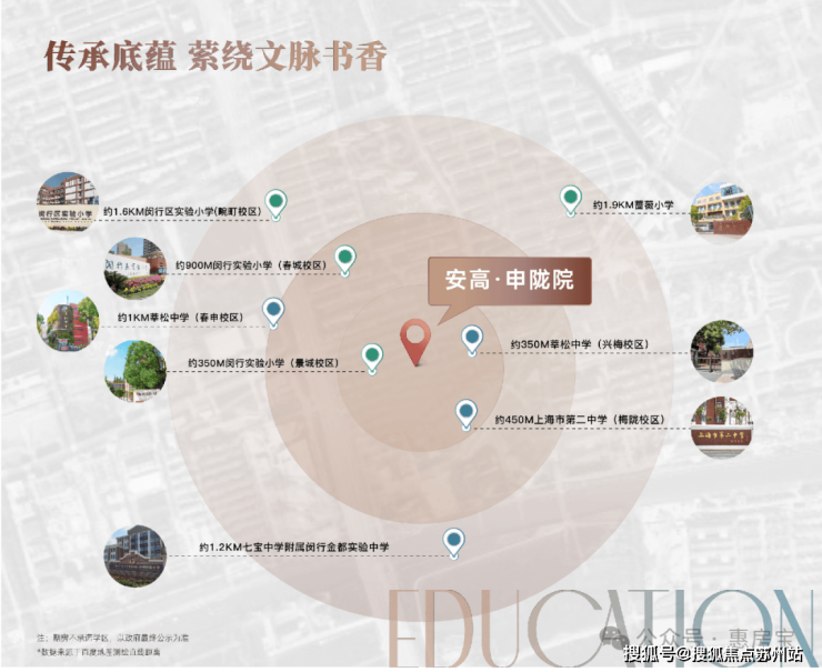 教育方面,参考项目隔壁春申景城,对口的小学为闵行实验小学景城校区,初中为莘松中学春申校区;