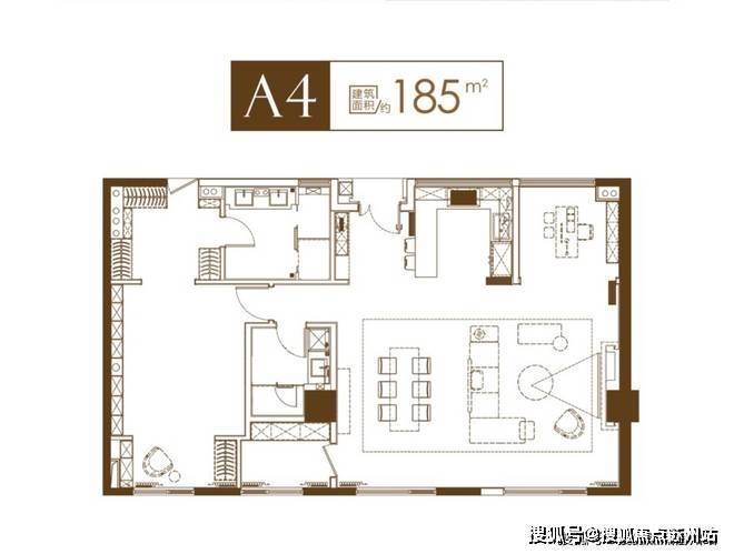 项目主打大平层,面积段丰富,有 185 平、196 平。2 梯 4 户的设计,保证了居住的私密性。