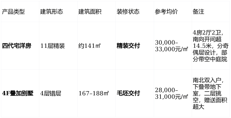 产品业态:建面约143㎡四代洋房&建面约168/188㎡花园叠墅