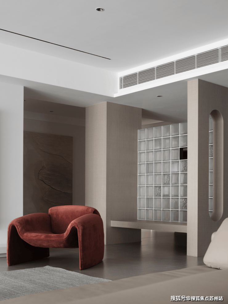 玻璃砖与镜面的漫反射运用,整体灰暗的空间又显得氛围感十足,有柔有刚,动静相宜,不与大同。