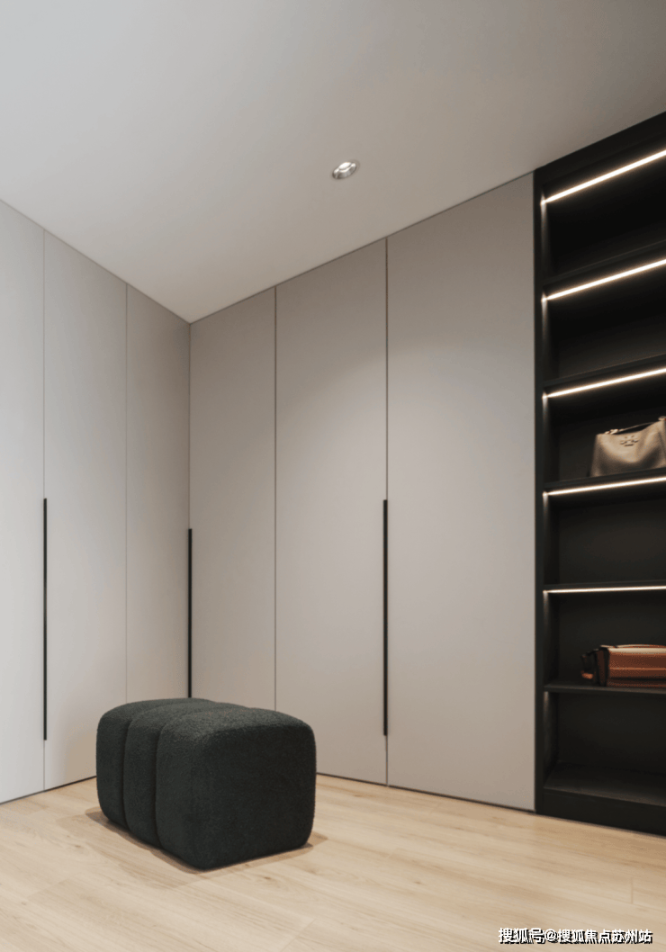 将一种更简洁、更温和的表达方式展现在私密区域,运用线条和空间之间的对比带来更丰富的视觉效果,同时使之不与公区相悖。