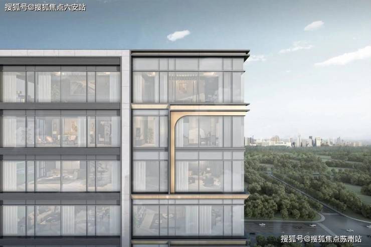 世茂璞云东方以国际审美汲取安缦奢华酒店建筑、景观、空间、文化灵感,打造都市度假漫游与隐奢生活体验。外立面采用铝板、大面积玻璃、釉面陶板与金属框线,组成了璞云东方的“初见惊艳”,工艺精巧且颜值极高的R角金属线框,更是犹如一道金色飞虹,只一眼便已难忘。