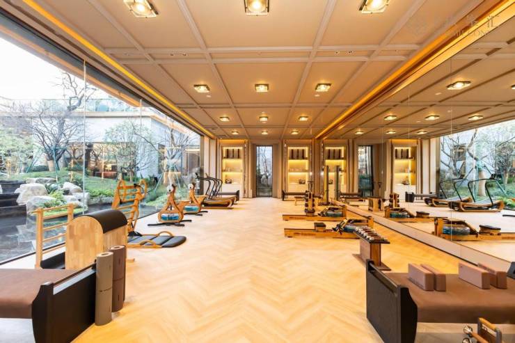 【金地玖峯汇】大手笔高定约2200㎡的“六艺雅集”私享会所,通过大面积玻璃,将下沉式庭院的景观透入,形成内外双园的沉浸式森居体验,奢配全景恒温泳池、全套高定WaterRower器械的健身房、以及瑜伽室、茶室、私宴厅、会客酒廊等六大主题臻享空间。