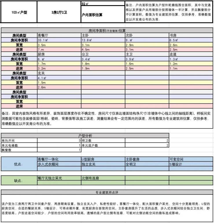 建面约103方B户型:
