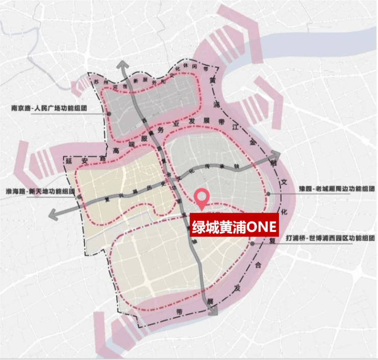 这一规划不仅物理上扩大了新天地的面积,更是重构了城市肌理,让几个片区左右相连,当中不再有断裂,联合构成一个强劲的黄浦中部板块。同时,也让绿城黄浦ONE成为了大新天地板块的新核心!