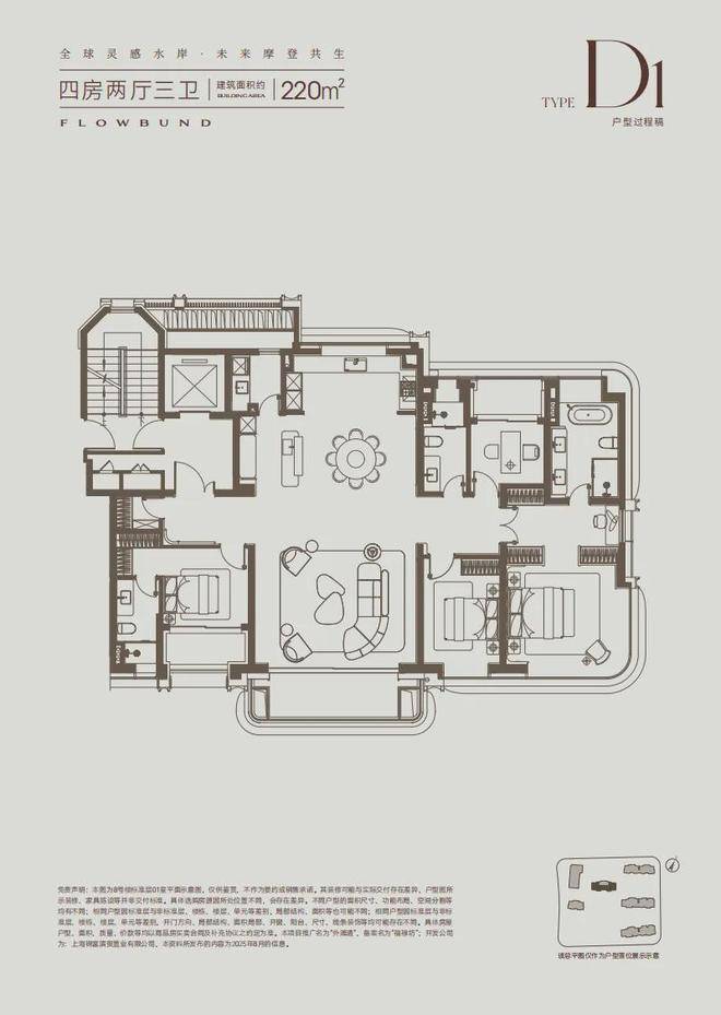 建面约220㎡四房,位于楼王位置,南北无遮挡,中西双厨,多阳台,双套房,加上约3.3米的超标层高,标准的一生之宅!