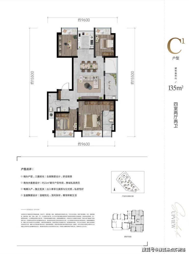 3、产品:2梯2户,电梯独立入户,115-143平米户型,均为大三房以及大四房产品;