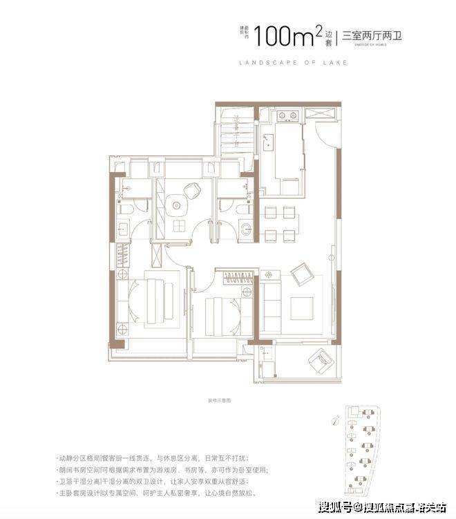 三开间朝南+主卧套房设计+动静分离+全卧室带飘窗,功能性和尺度感完美结合的3房,能满足业主从二人世界到三口之家,再到二胎家庭的全生命周期需求.