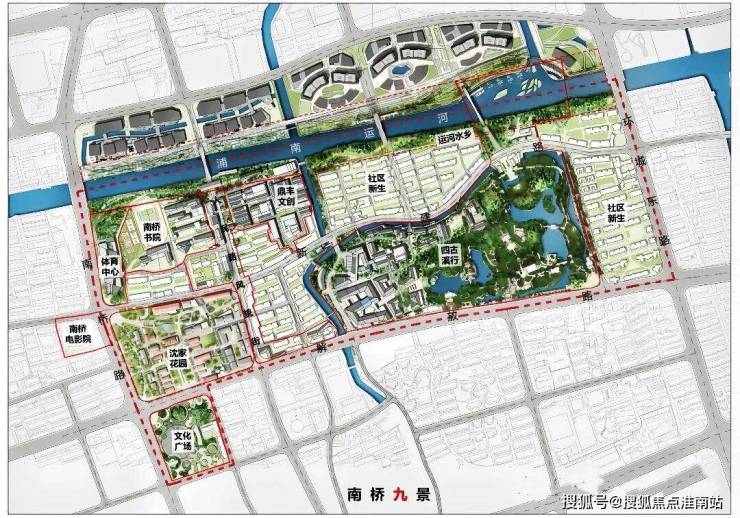 一座城 | 千亿更新的南桥源九景城市更新“南桥源”项目总体方案涉及四古溪行(古华商城、古华山庄、古华园、古华渡)、沈家花园、文化广场、鼎丰文创、体育中心(南桥中学体育场馆)、南桥书院(南桥中学)、卜罗德祠、人民路历史文化风貌街、运河水乡(浦南运河两岸水街)9个地块的更新改造,称为“南桥九景”。