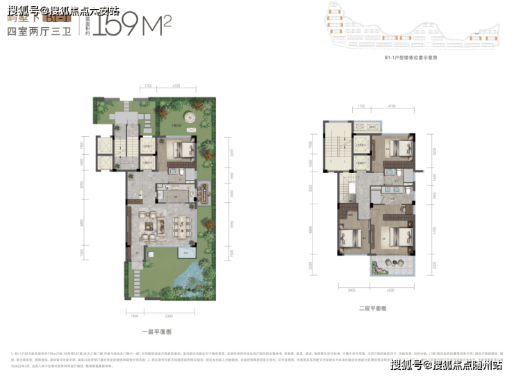 下叠:270°环抱花园(60-100㎡)+下沉庭院,L型半包围客餐厅(约7.2米面宽),独立老人房;