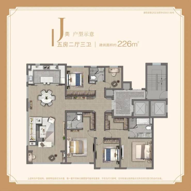 【建面226㎡5居】1900-2100万,5室2厅3卫, 南朝向,楼栋分布于6号楼/8号楼/11号楼