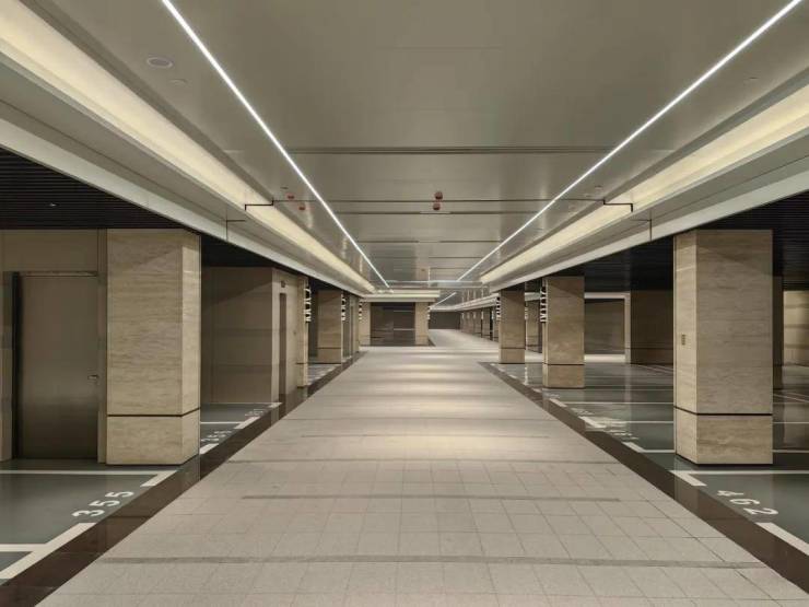 宝华的精装车库一直被模仿,从未被超越,地下车库采用石材车道、镜面环氧停车位,空间宽敞、明亮通透。