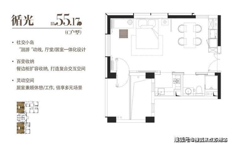 C|循光|建面约55.17 m²|一室一厅一厨一卫