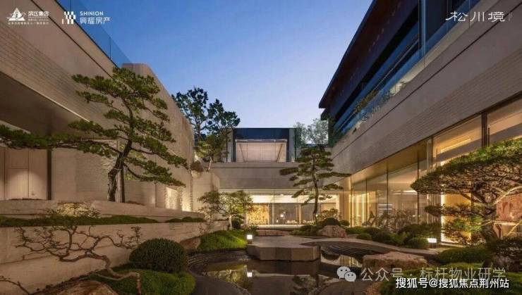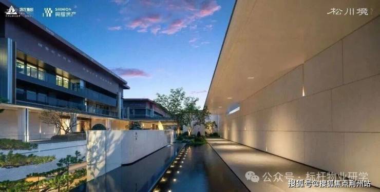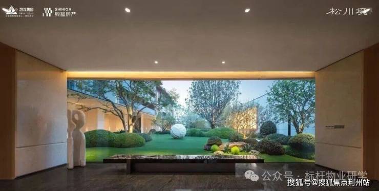 约3300平方米的中央景观,下沉式庭院与双水院景观错落有致,将《松阁观潮图》、《溪山行旅图》、《山亭文会图》三幅宋代古画,巧妙融入松川境的立体山水之中.高层与排屋区之间,一条长约210米的中轴景观横贯东西,串联起「松川十一境」的雅致画卷.该项目景观设计由北京顺景园林执笔.