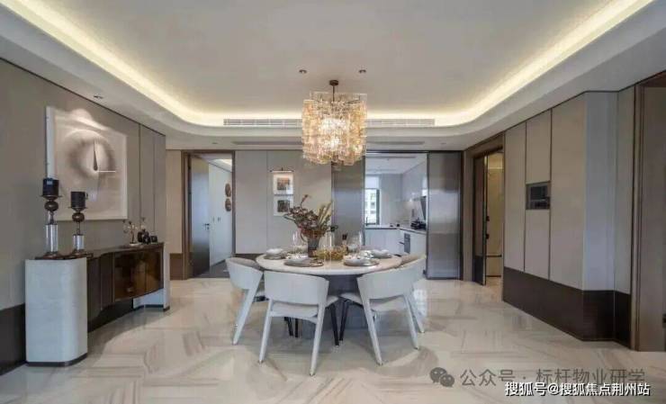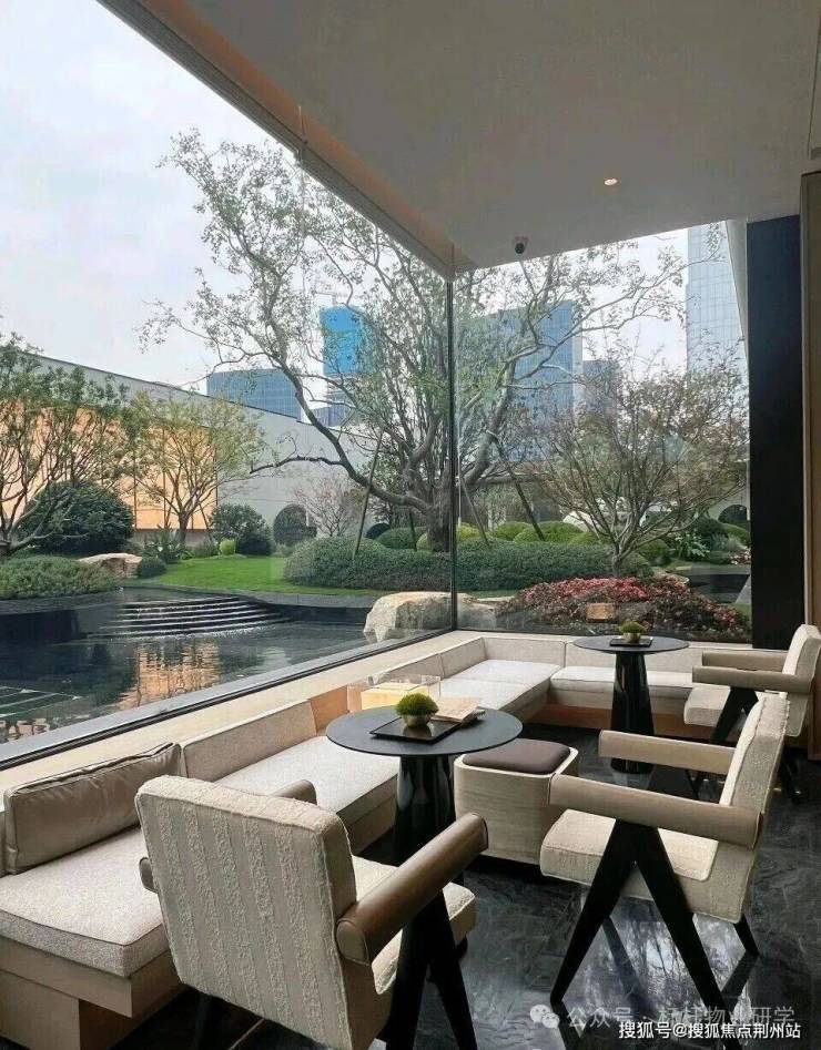 建筑立面以“山水折屏”为核心理念,GLA建筑设计巧妙融合浅灰色铝板与玻璃幕墙,通过横向线条的层叠和竖向框架的分割,生动再现山水画的层次韵味.秉持“消隐与凸显”的设计哲学,高层立面运用45度斜切铝板与低辐射玻璃的组合,巧妙弱化建筑体量感,同时以局部金色铝板线条精准勾勒山水画的轮廓.高层立面采用“三段式”设计,基座选用深灰色石材,中部为浅灰色铝板与玻璃幕墙,顶部点缀金色铝板线条,共同构筑“山-水-天”的立体意境.