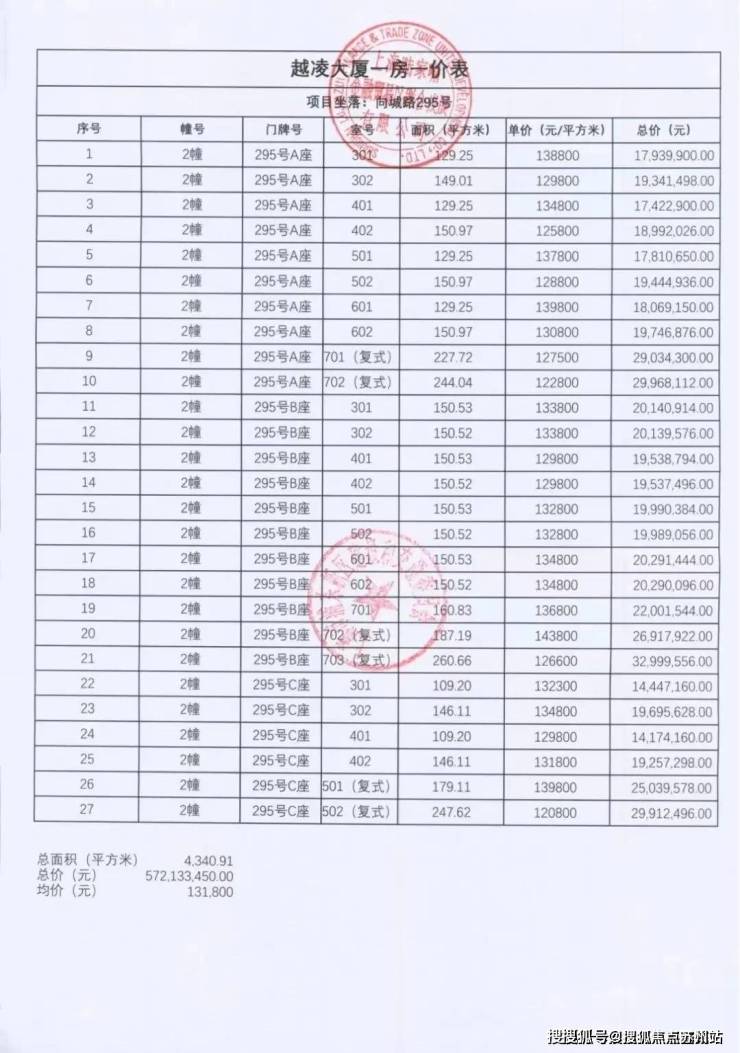 项目一房一价表▼