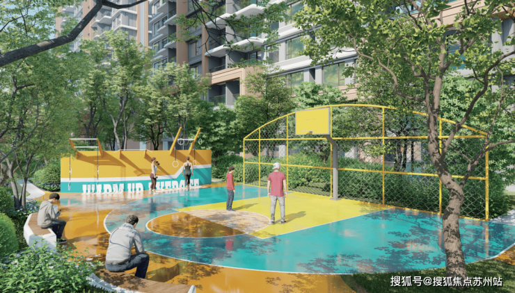 与此同时,社区内部还打造了丰富的运动场景,分别规划出6大运动系统,包括社区室外:篮球场、乒乓球场、羽毛球场、AI智能跑环等。