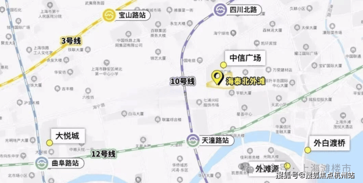 周边500米范围内,12号线天潼路站、10号线四川北路站环绕.车行主干道:北横通道、大连路、新建路、外滩隧道,南北高架、延安高架等.